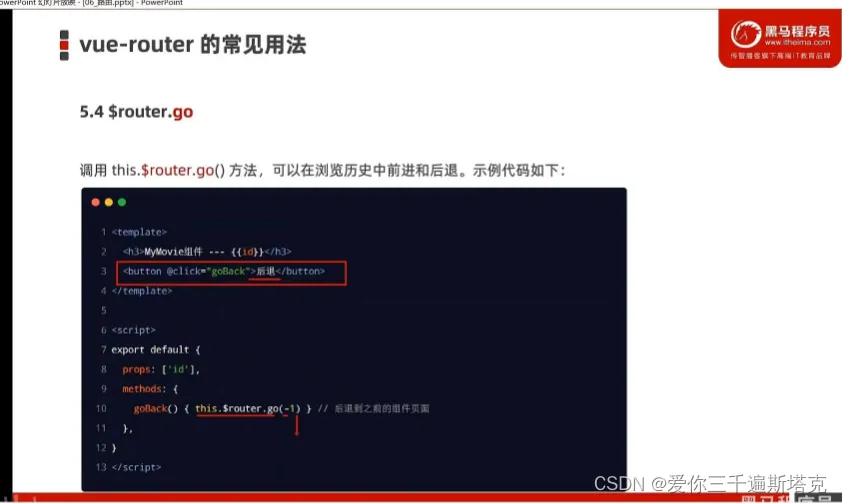 41、返回后面的那一层:使用this.$router.go()可以返回过去历史的那一层: