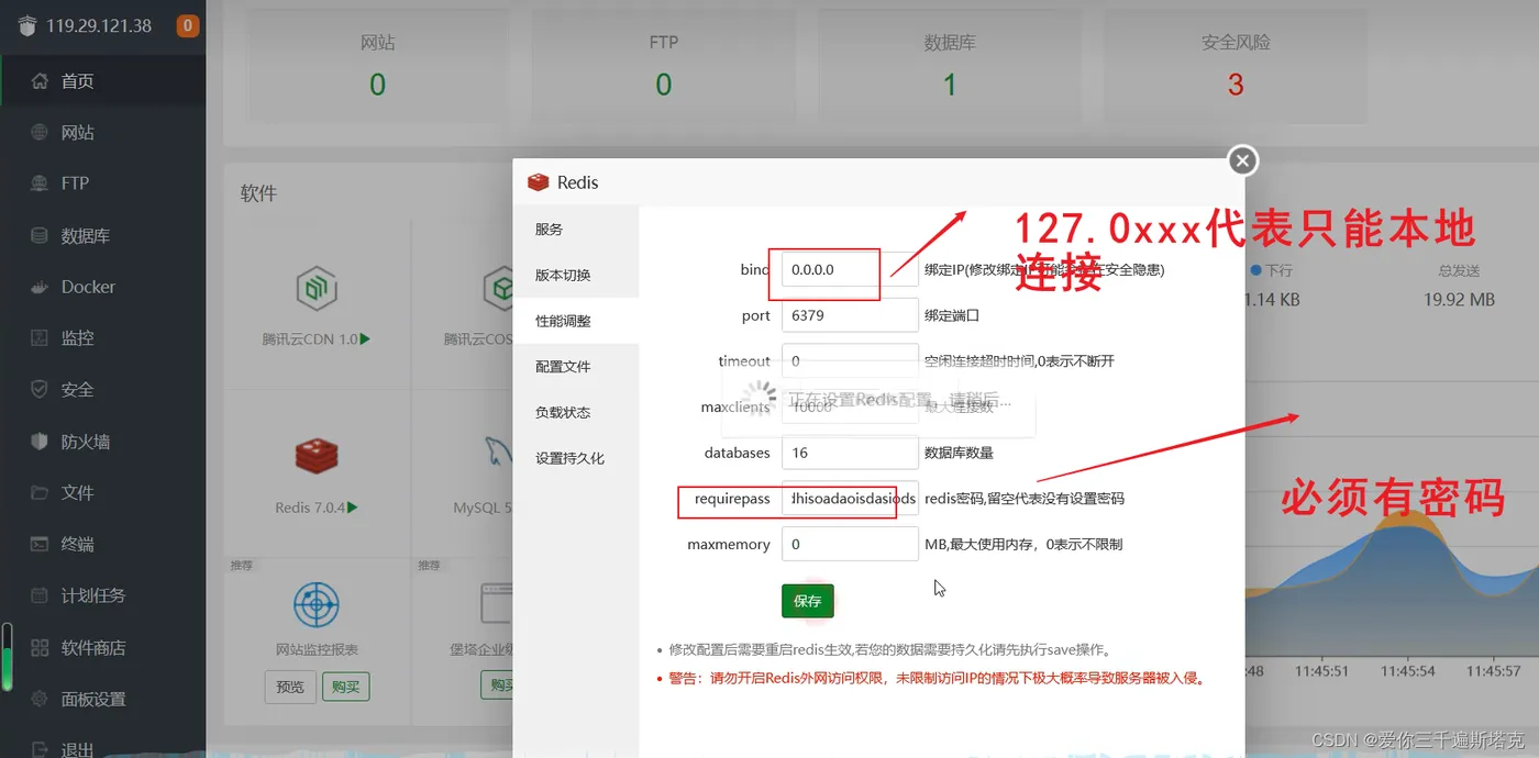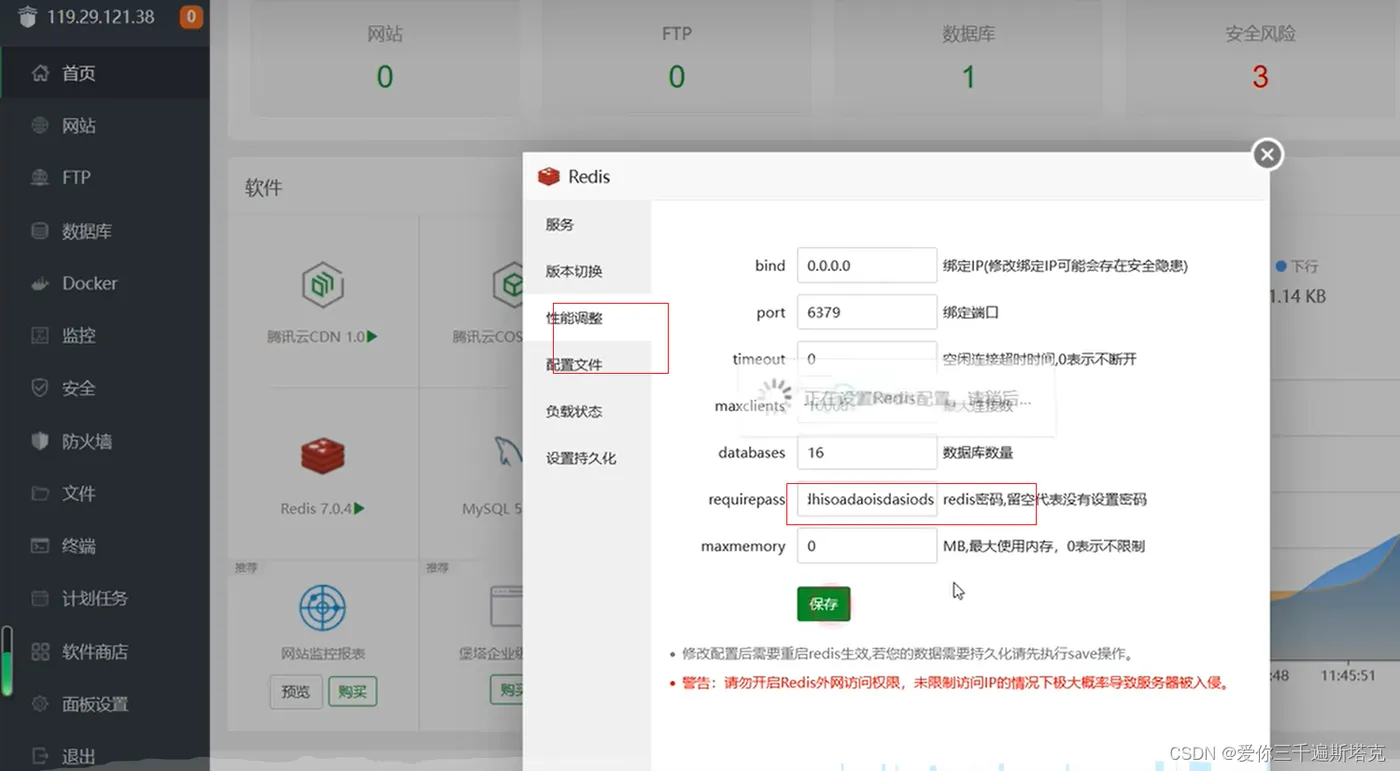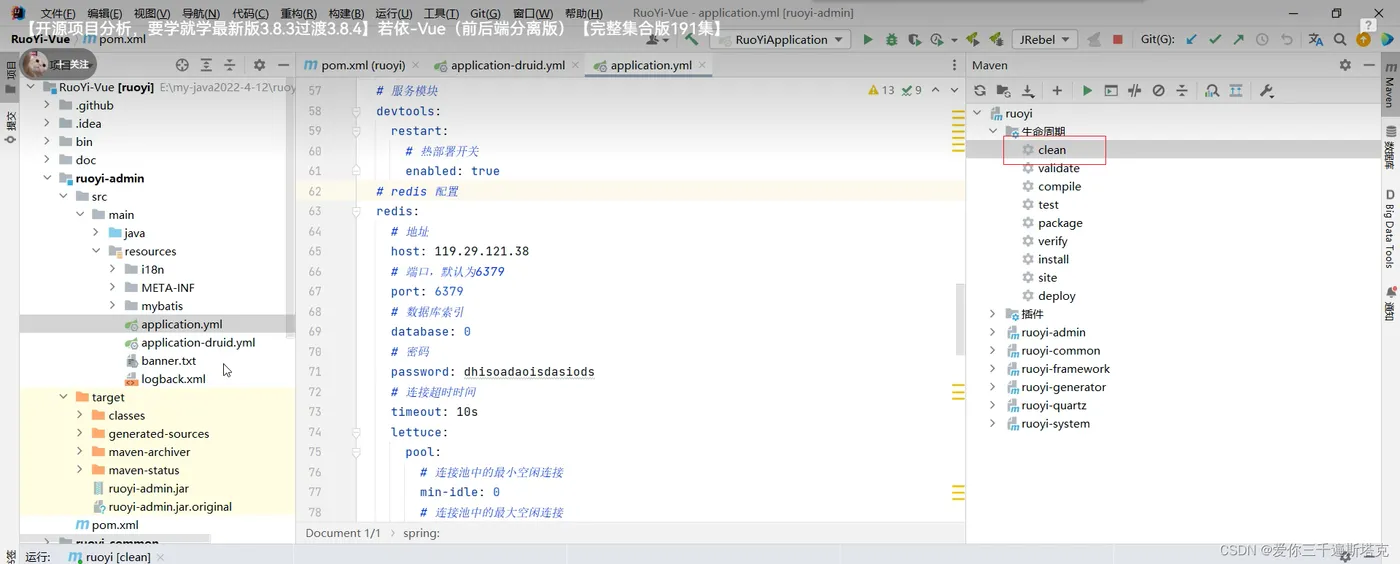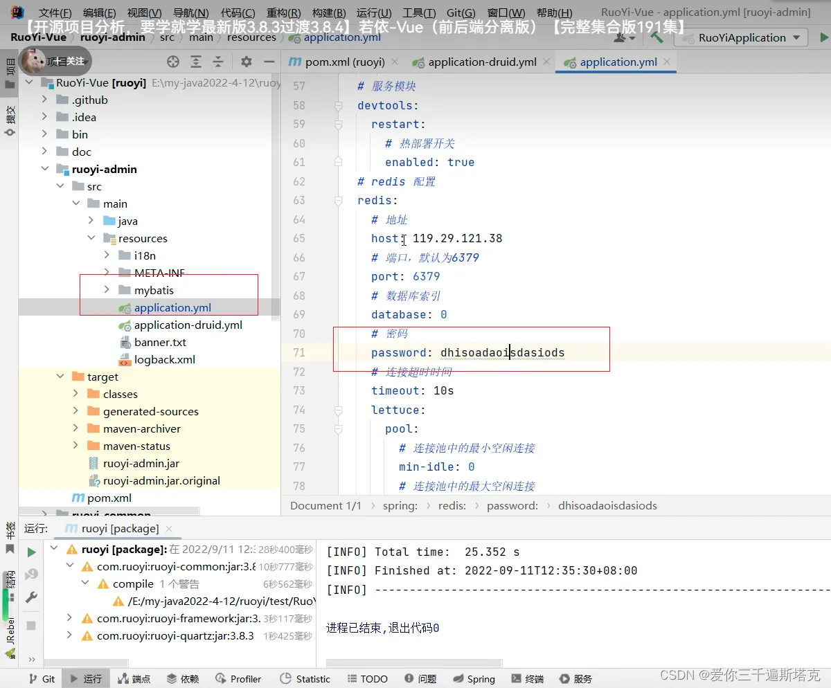 38、这里设置redis的密码,redis的地址也要修改,项目能跑起来,再打包