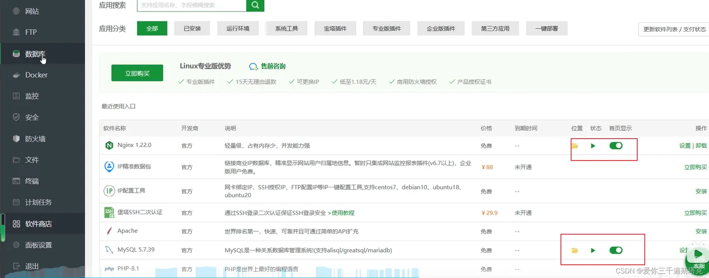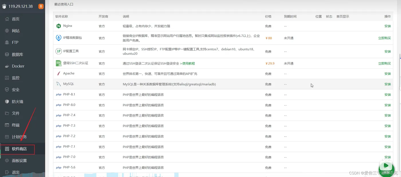 4、利用宝塔:这里查自己之前的资料,点击软件商店,下载Mysql和Ngnix
