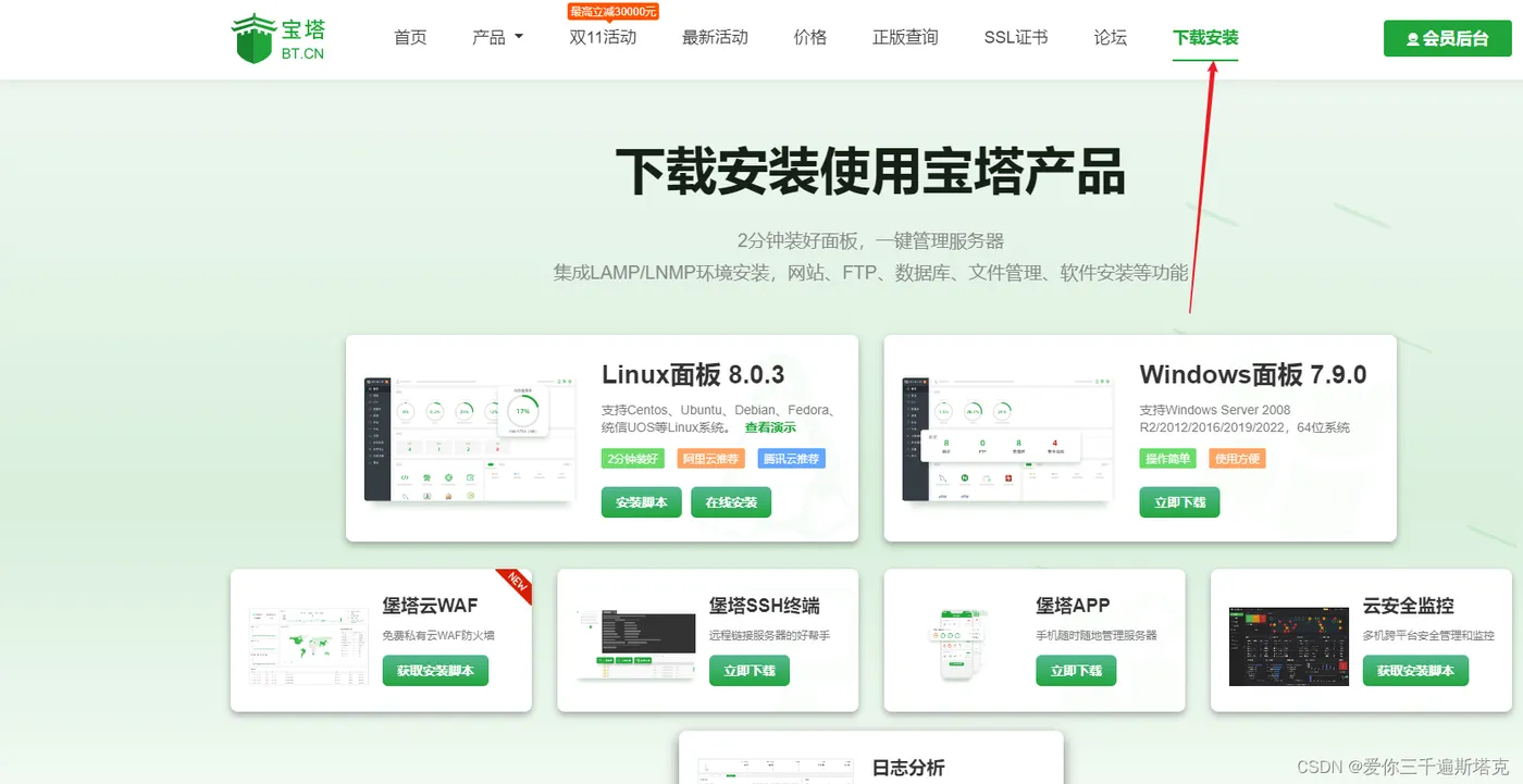 宝塔面板下载,免费全能的服务器运维软件:点击下载安装