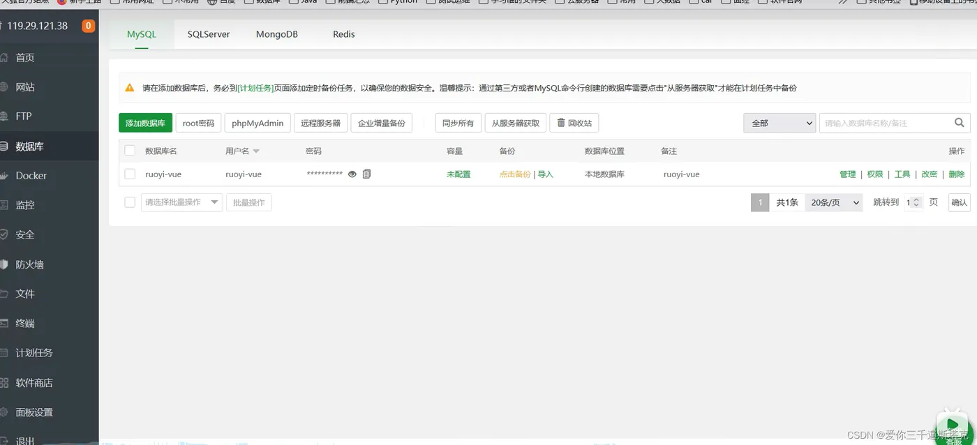 15.2 以上步骤为利用宝塔来控制我们的服务器,安装了java,redis,MySql,Ngnix