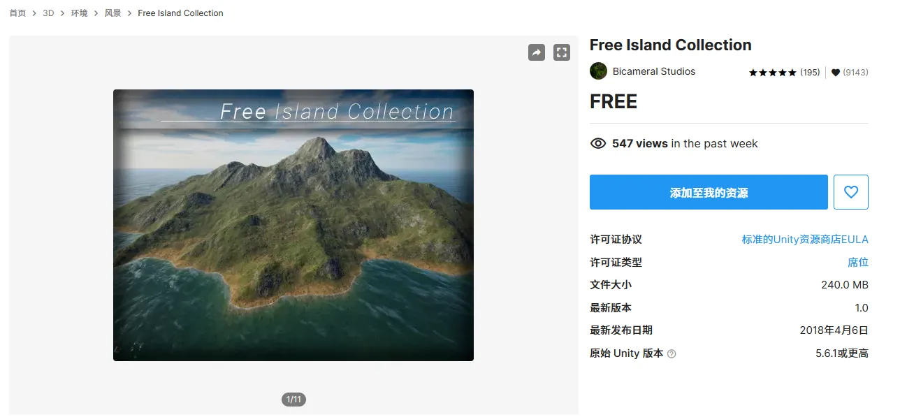 https://assetstore.unity.com/packages/3d/environments/landscapes/free-island-collection-104753