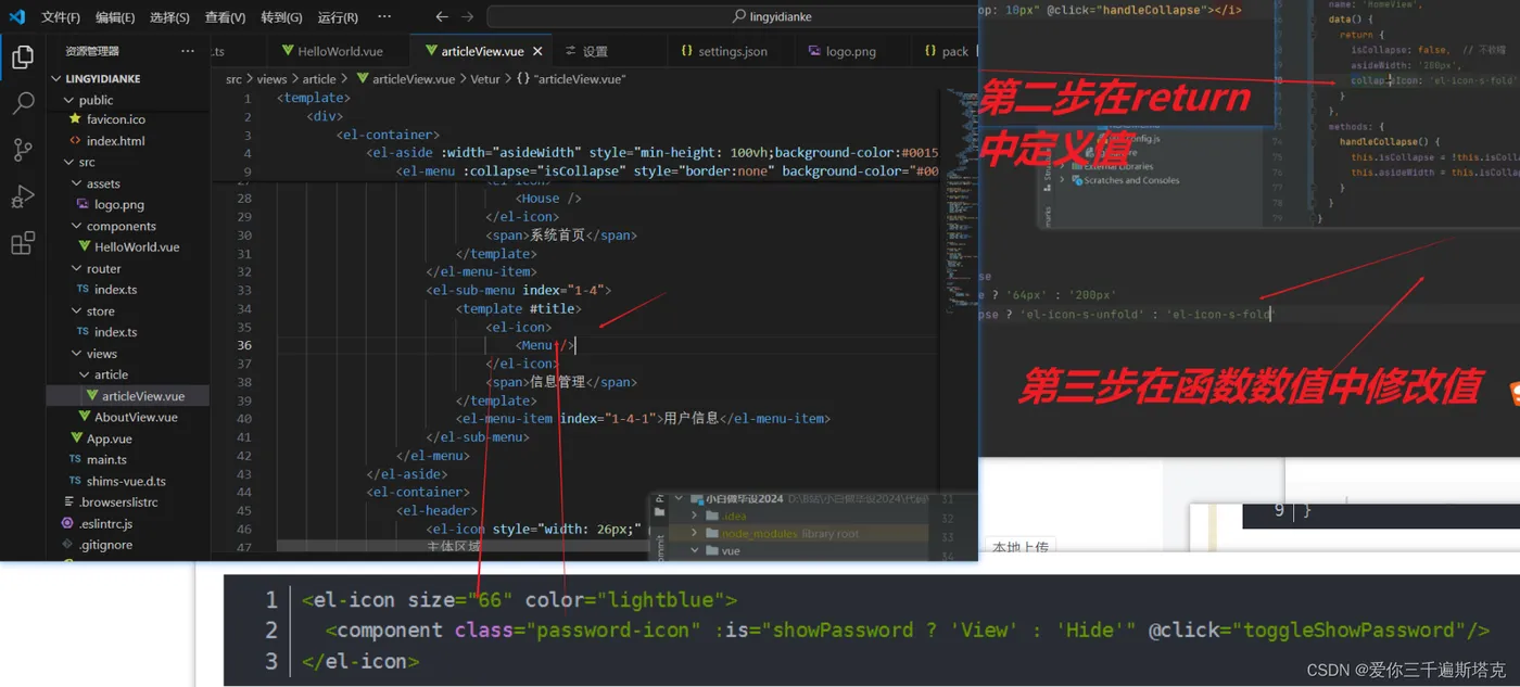 vue3 elementplus el-Icon 动态渲染 点击切换icon图标组件_vue3怎样实现点击切换图标?