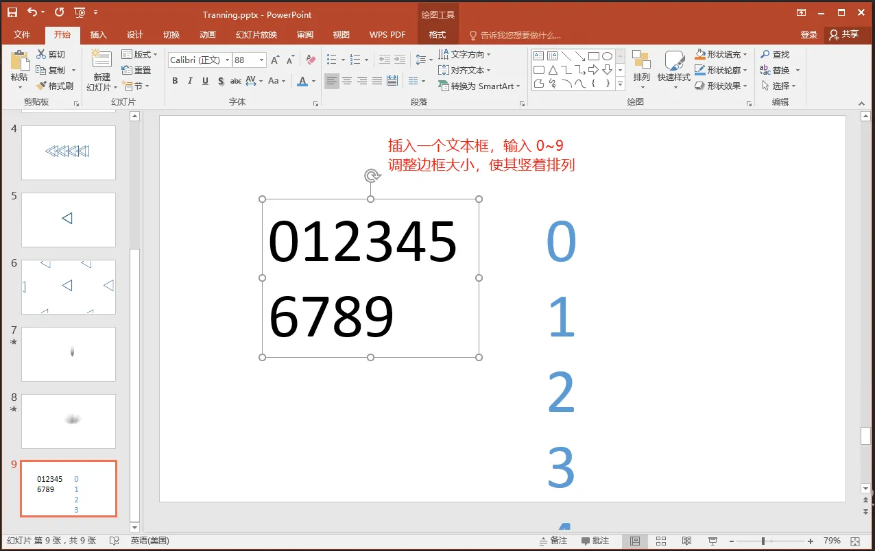 插入一个文本框,输入 0~9