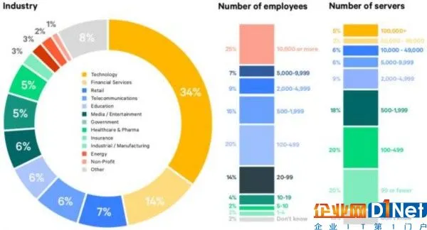 今年 Puppet 对全球范围约 3200 人进行的一次调查,包括高管,开发人员和 IT 专业人士。 最多的受访者来自拥有 100-499,500-1999 和 10k + 员工规模的组织,其中大多数来自 DevOps,IT Ops / 基础设施和开发 / 工程类别。