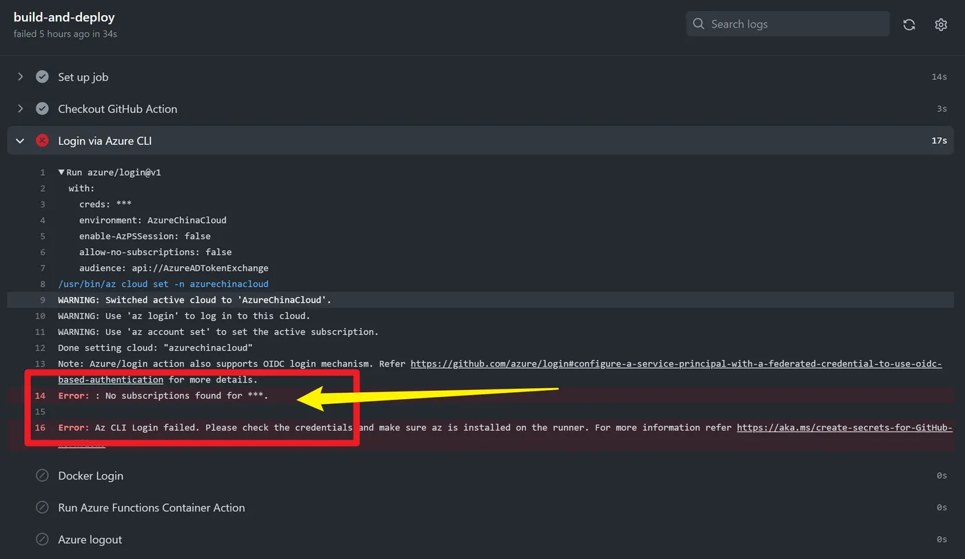 在使用 Github Action - Azure/login@v1 的插件时候,登录中国区Azure遇见了问题。
