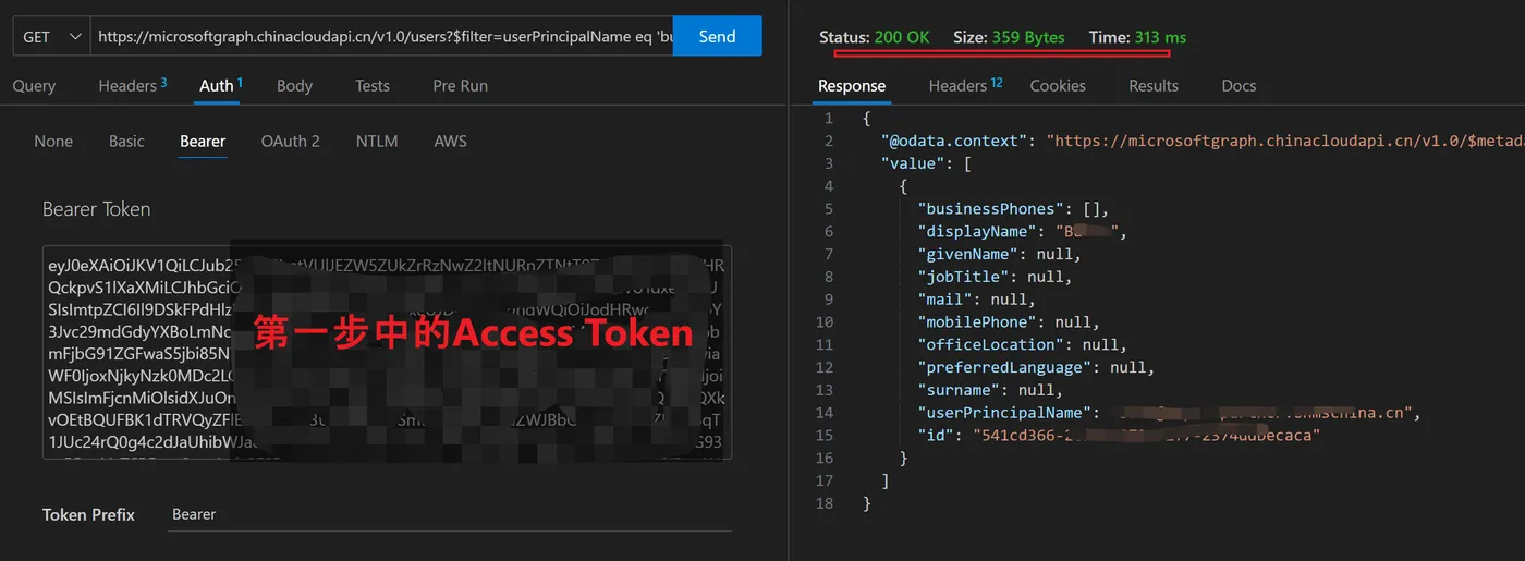 第二步:调用 Microsoft Graph Users接口查看用户信息