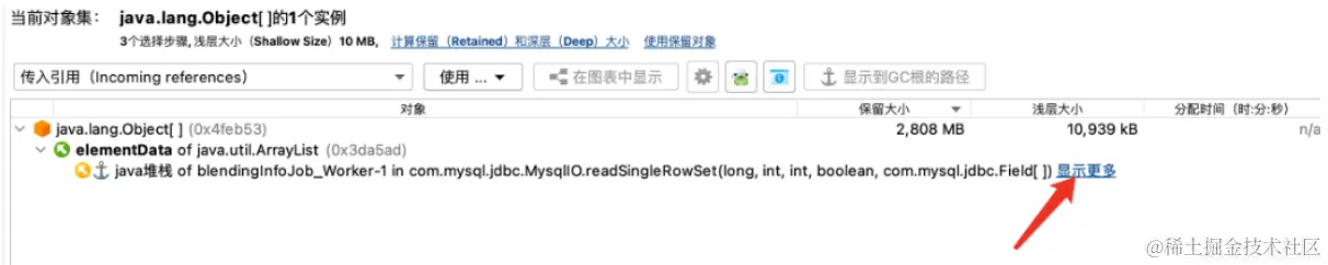 3.如果是内存泄漏,可进一步通过工具查看泄漏对象到GC Roots的引用链,修复应用程序中的内存泄漏。