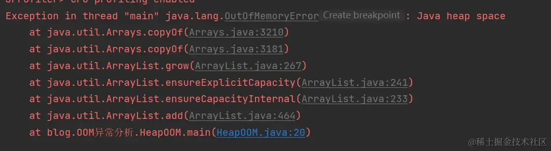 2.使用内存映像分析工具(如Jprofiler)对Dump出来的堆储存快照进行分析,分析清楚是内存泄漏还是内存溢出。