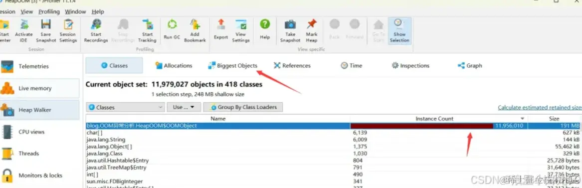 2.使用内存映像分析工具Jprofiler分析产生的堆储存快照
