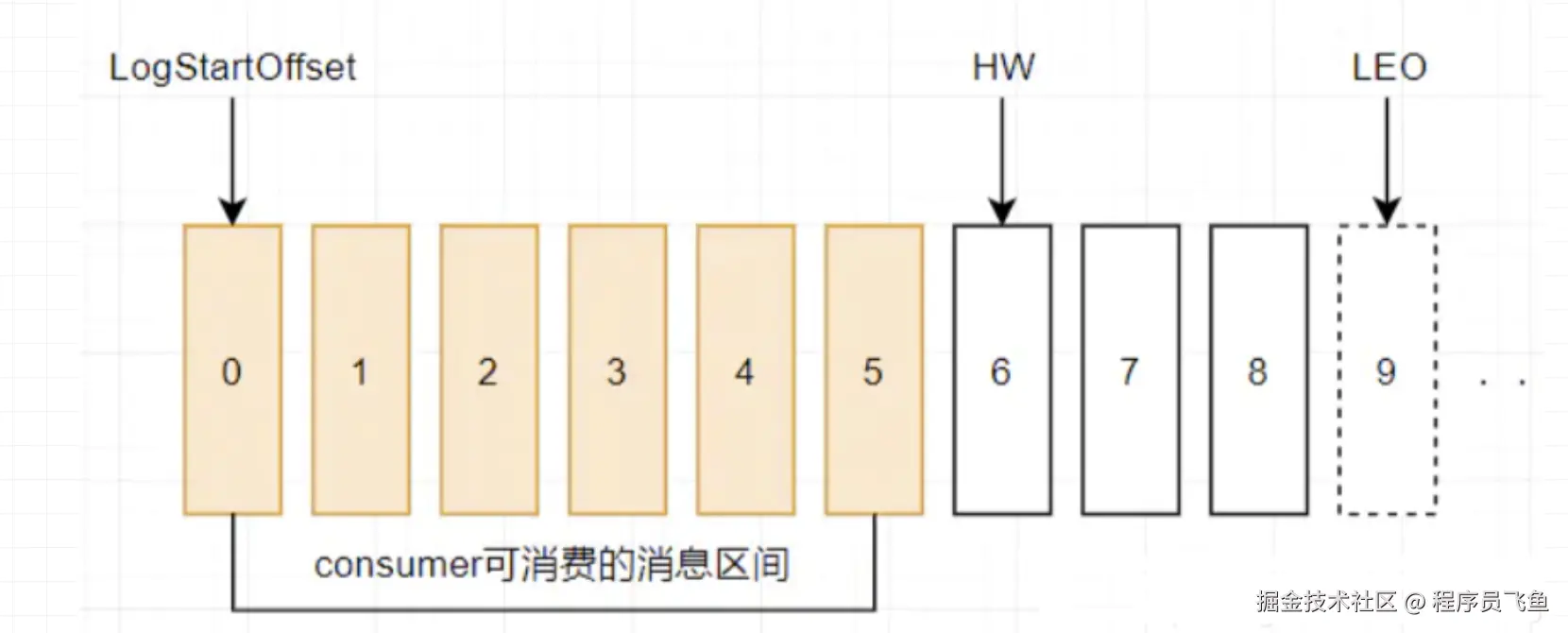 上图中offset为9的位置即为当前日志文件的 LEO,LEO 的大小相当于当前日志分区中最后一条消息的offset值加1。