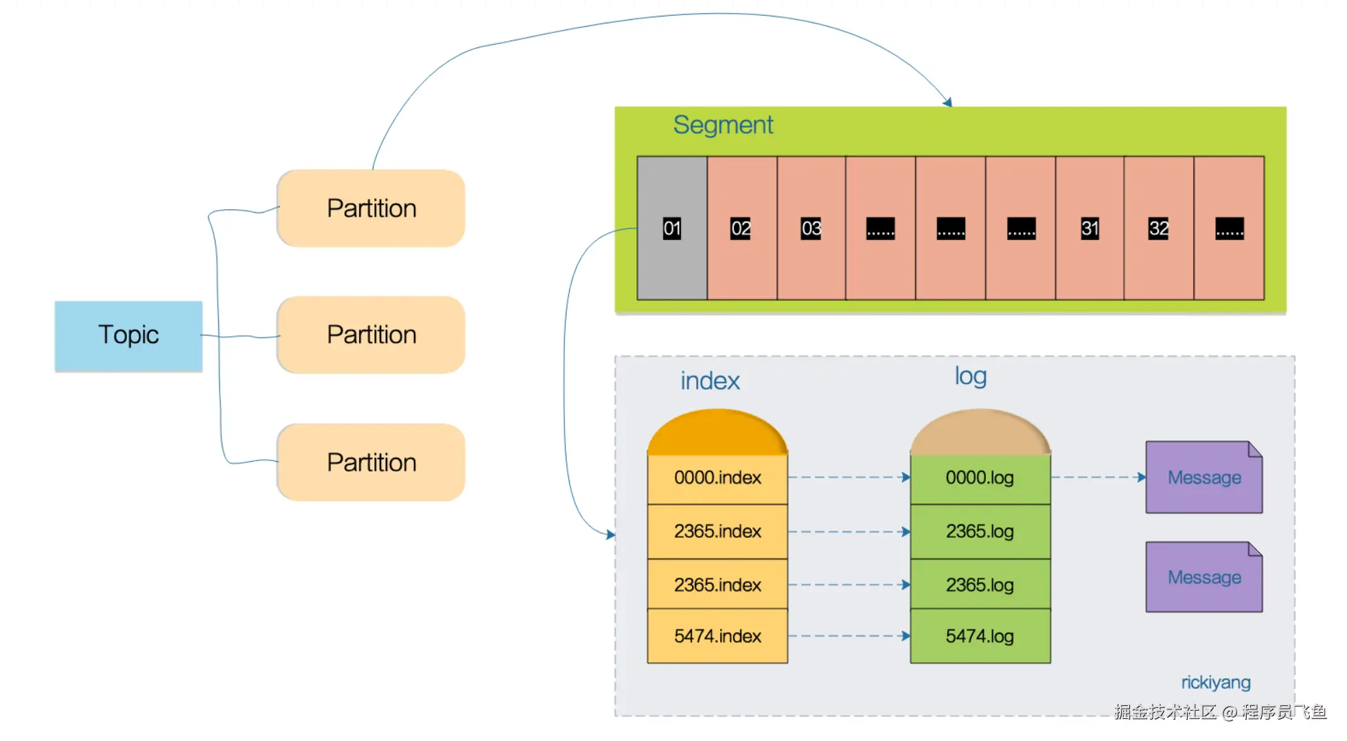 Partition 又划分成多个 Segment 来组织数据。
