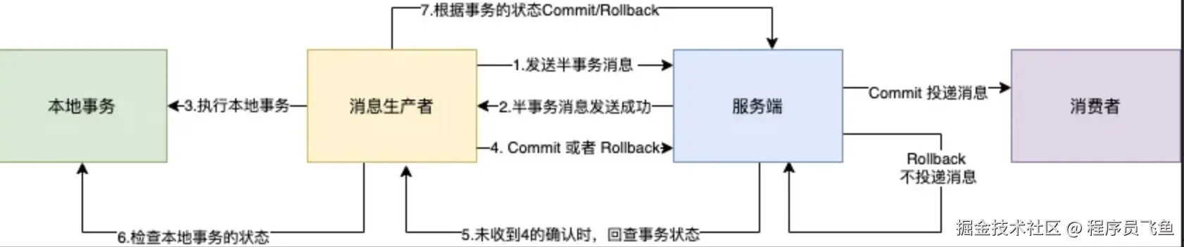 - 这个时候在Broker端,它还是个Half Message(半消息),这也会回查。