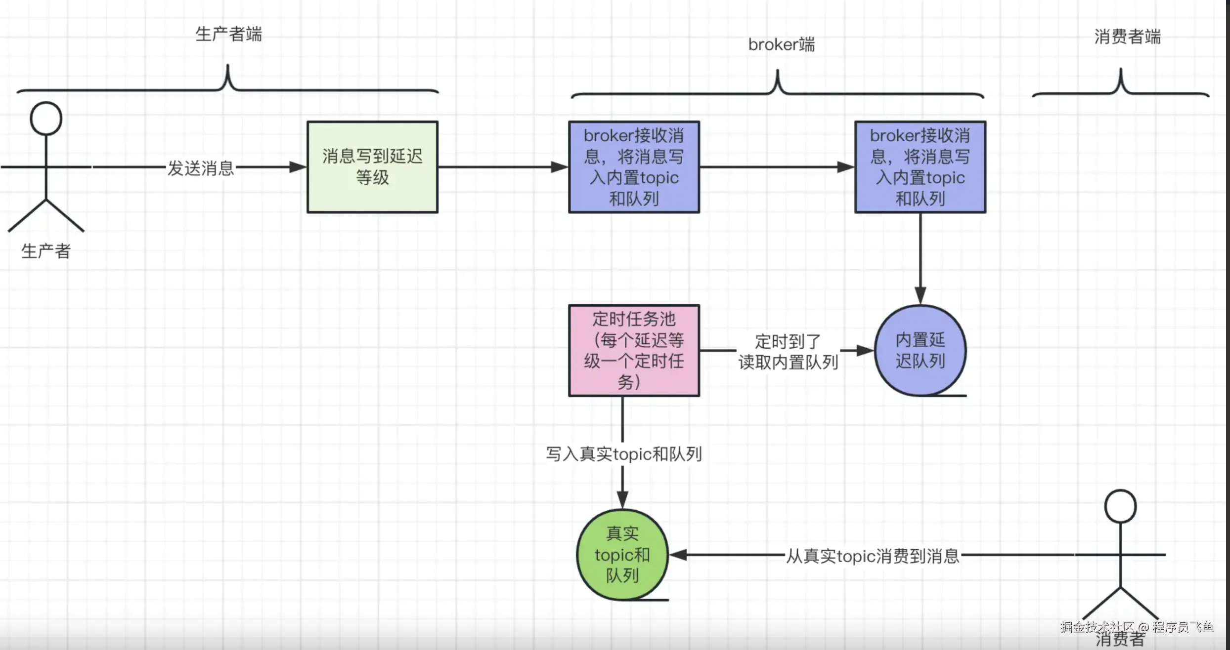 SCHEDULE_TOPIC_XXXX的延迟队列中。- 后台定时任务按照对应的时间进行Delay后重新保存至