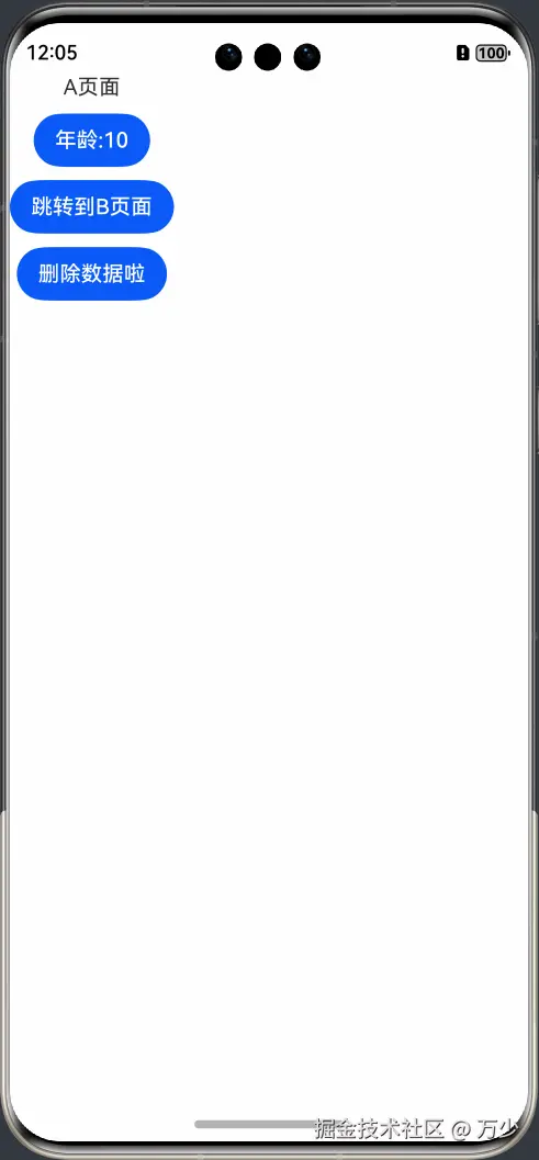 import { AppStorageV2, router } from '@kit.ArkUI' @ObservedV2 export class Person { @Trace age: number = 10 } @Entry @ComponentV2 struct Index { @Local person: Person = AppStorageV2.connect(Person, () => new Person)! build() { Column({ space: 10 }) { Text("A页面") // 预览器会失效 Button(`年龄:${this.person.age}`) .onClick(() => { this.person.age++ }) Button("跳转到B页面") .onClick(() => { router.pushUrl({ url: "pages/Index2" }) }) Button("删除数据啦") .onClick(() => { AppStorageV2.remove(Person) }) } } }