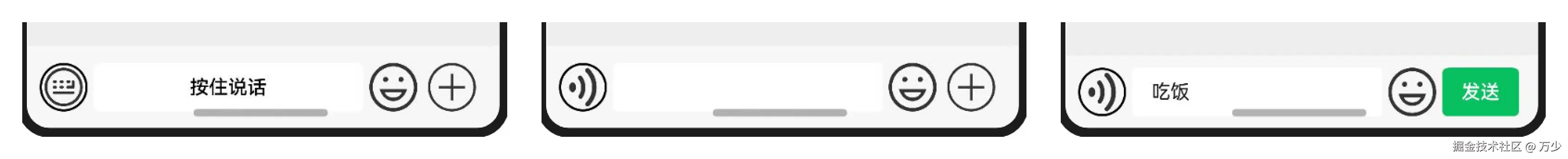 可以看到,底部消息发送框起码有三种状态
