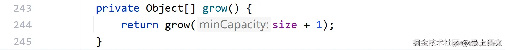 可以看见grow方法也是有重载方法的,给这个重载的grow方法传递的参数是size+1,那么继续跟进到grow的重载方法中: