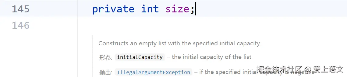 这个重载的grow方法中的参数是minCapacity,其意义是“数组扩容后的最小容量”,现在数组扩容后的最小容量是1(size+1),有一个叫oldCapcity变量,用来记录ArrayList底层数组的长度,顾名思义,也就是老(数组)的容量,然后开始判断老容量(oldCapcity)是否大于0或者elementData数组是否不是一个空数组,很显然,是第一次加入集合,if不会执行,那么就会执行else中的语句:会返回一个新的数组,其容量是DEFAULT_CAPACITY和minCapacity中的较大值(DEFAULT_CAPACITY是一个常量,值为10),很显然,这次会返回一个大小为10的数组。 然后可以回到add方法中,当扩容结束后,就可以在size处加入元素了,加入之后,size会+1,因为此时的集合长度已经是1了,而且下一个要加入集合的元素应该加入的索引也是1。