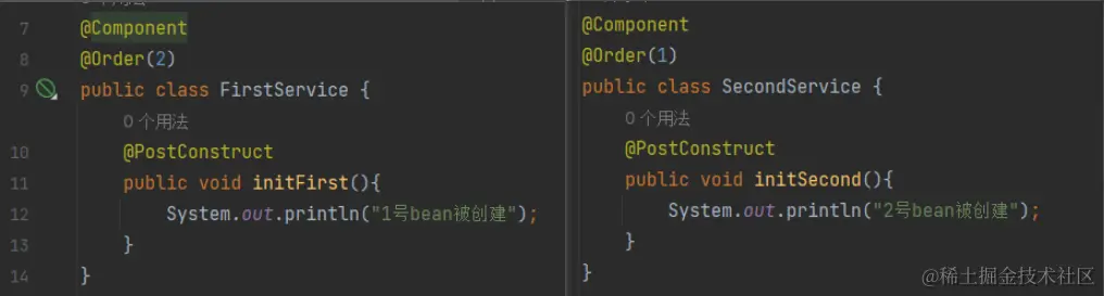 嗯?不是数字越低优先级越高吗,结果怎么还是 1 -> 2?相信眼尖的人已经看出来了,我在开头埋了个坑,用 @PostConstruct 作初始化操作