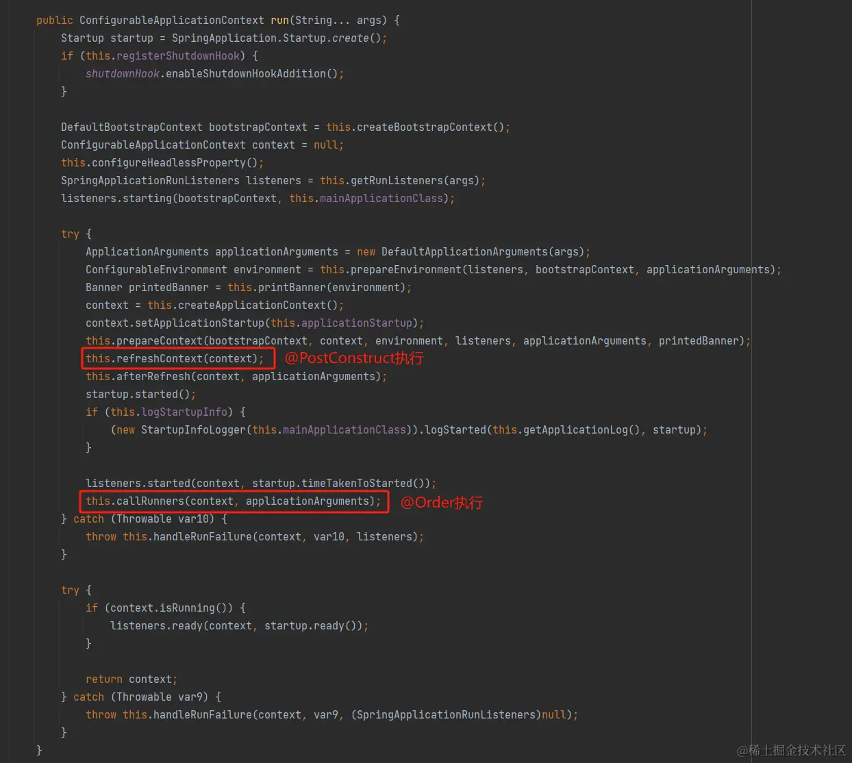 @PostConstruct 方法的执行顺序是由 Spring 容器在 bean 初始化过程中自动管理的,与 @Order 注解无关。