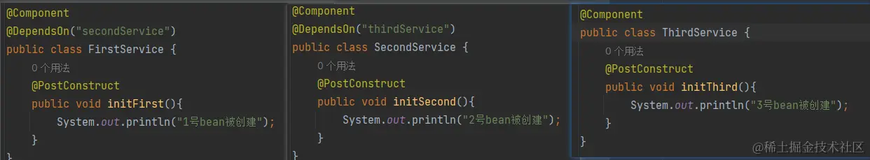 这是第一个想到的方法,我们给每个service上加上@Order,让他们倒序创建