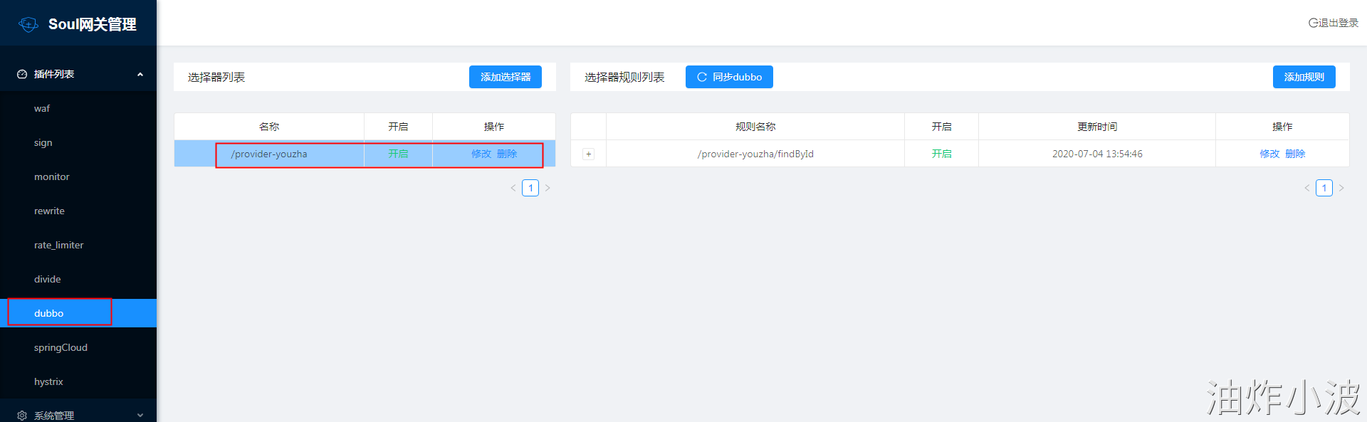 soul: # 网关dubbo配置 dubbo: adminUrl: http://127.0.0.1:9093 contextPath: /provider-youzha appName: provider-youzha # 网关http配置 http: adminUrl: http://127.0.0.1:9093 contextPath: /provider appName: provider full: false port: 9091