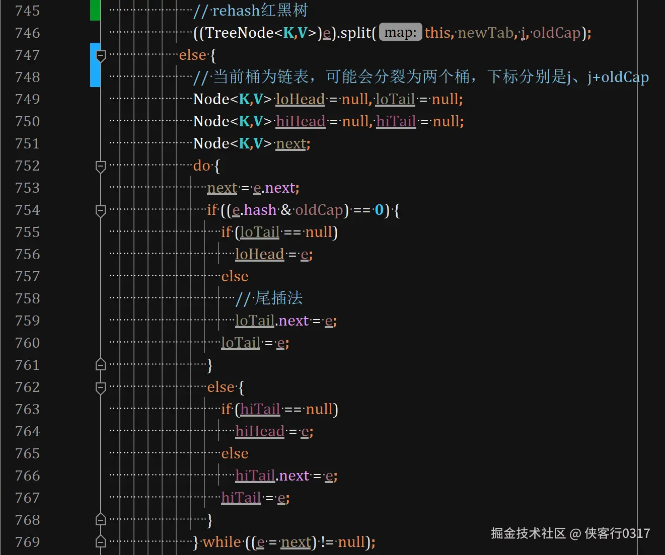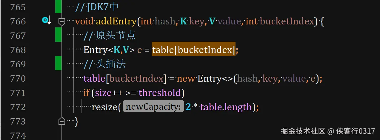 需要注意,resize时对链表也采用尾插法。