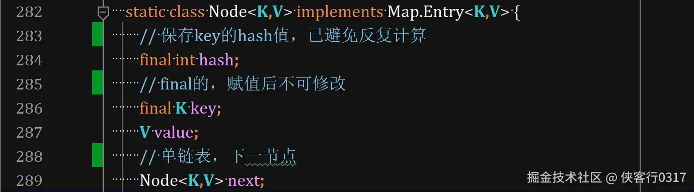 嵌套类Node<K,V>,即键值对,是单链表结构。树化时使用嵌套类TreeNode<K,V>。