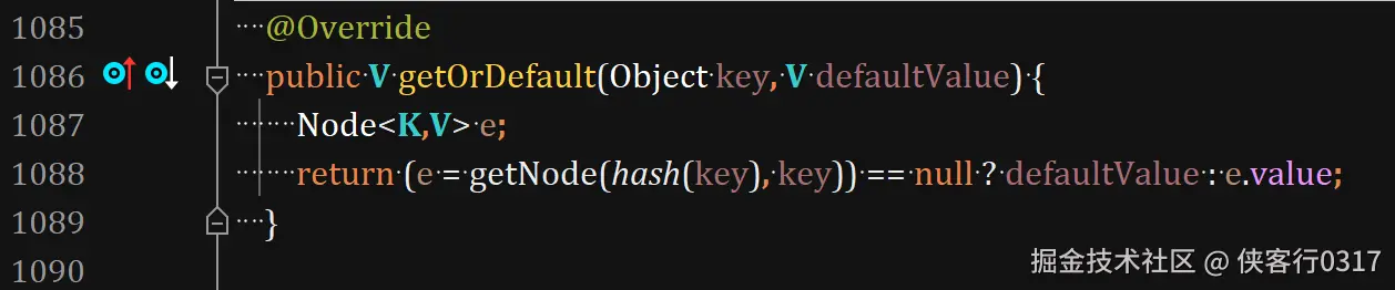 而getOrDefault()在key不存在时,可以返回给定值。