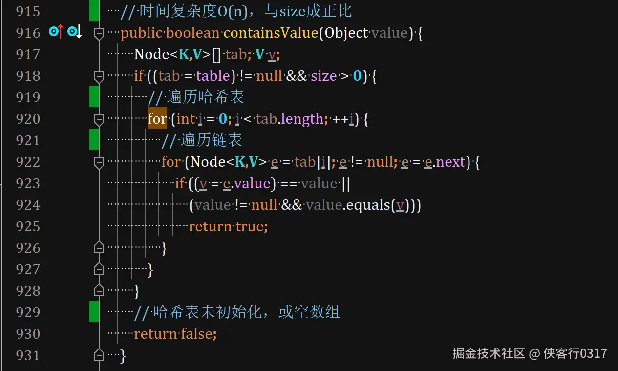 containsKey时间复杂度是o(1)。 而containsValue是O(n),与size成正比。