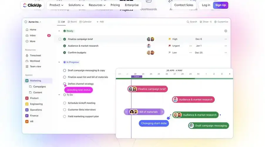 ClickUp 是一款综合性的工作管理平台,旨在为用户提供一站式的任务、项目、文档和沟通管理解决方案。它提供了丰富的功能和多种视图选项,能够满足不同团队的需求。