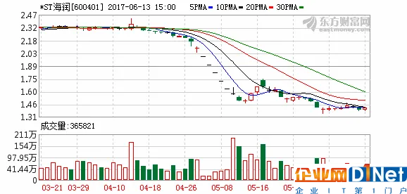直到海润光伏2016年年报于今年4月29日宣布,公司归属净利润巨亏11.79亿。同时,由于年报无法出具表示意见的审计报告,海润光伏再度披星戴帽。而就在年报公布的半个月前,横盘近2年的股价也迅速下跌。5月份正式股价跌破2元,*ST海润再次沦为曾经剑指千亿市值踏入“1元”的企业。