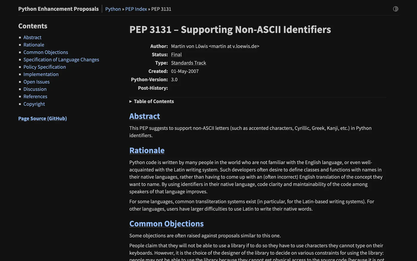 - https://peps.python.org/pep-3131/
