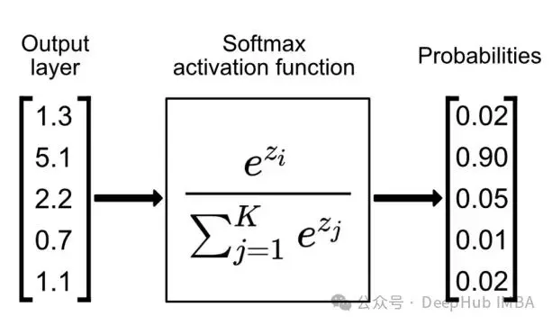 此时,类别0获得最高概率,成为模型的预测输出。模型同时为类别1和类别2分配了较低的概率值。这种概率分布表明,尽管输入数据最可能属于类别0,但其特征表现出了与类别1和类别2的部分相关性。