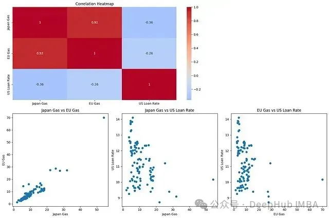 相关性分析结果显示,日本和欧盟天然气价格之间存在显著的正相关关系,这符合有效市场理论的预期。而天然气价格与美国贷款利率之间则表现出较弱的相关性。