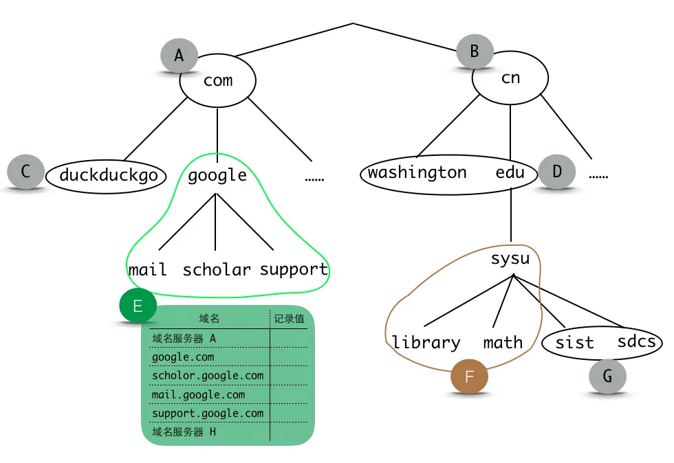 google.com的A记录)。 - 父级和子级域名的NS记录(用于层级查询)。
