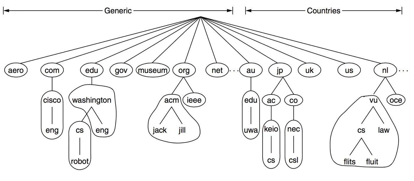 为确保域名唯一,DNS采用类似现实地址的层级结构(如home.google.com)。