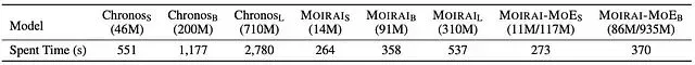 实验数据显示,尽管 MOIRAI-MOE-Base 的总参数量是 MOIRAI-Large 的 3 倍,但由于 MOE 机制的作用,其实际仅激活 86M 参数,使得运行时间明显优于 MOIRAI-Large (370s vs. 537s)。