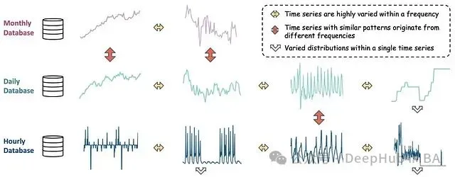 图 5:*不同频率的时间序列可能表现出相似模式,而同频率序列可能有显著差异。*