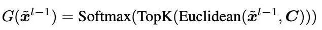 其中 x 表示 MOE 层的输入向量,C 表示聚类中心集合。