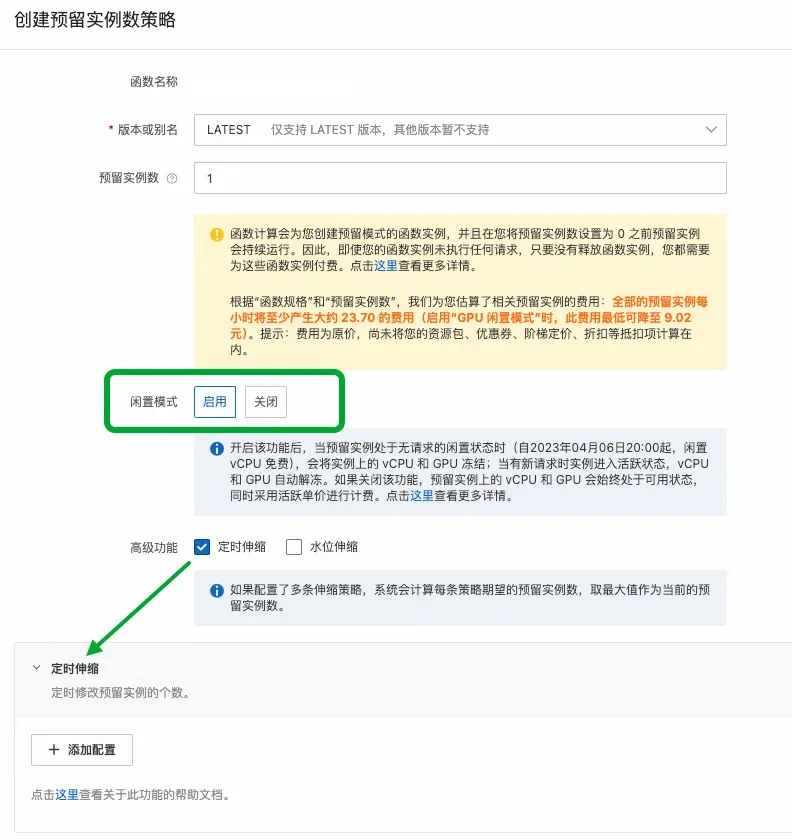 7. 配置预留实例并开启闲置计费:创建所需数量的预留实例并按需配置定时预留。