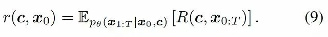 与从 Eq. (6) 到 Eq.(8) 的推导类似,我们可以得到一个直接优化条件分布的目标:(而不是像 Eq. (10) 那样优化奖励函数然后执行 RL)