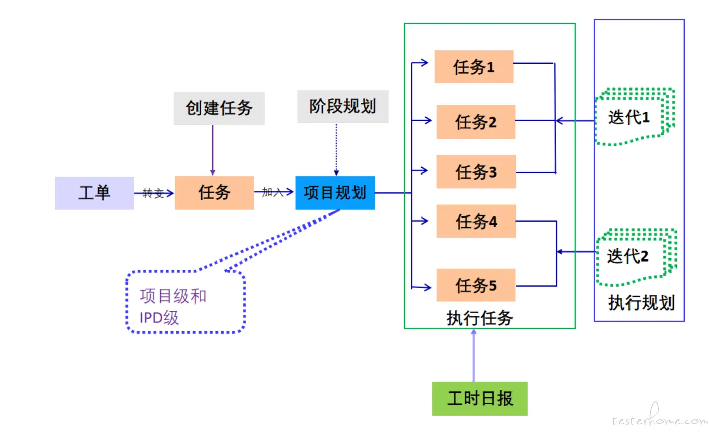 流程上两都一样的。只是和需求型,在各阶段中以需求来开展工作事项,而任务型流程在各阶段中直接以任务来开展工作事项。