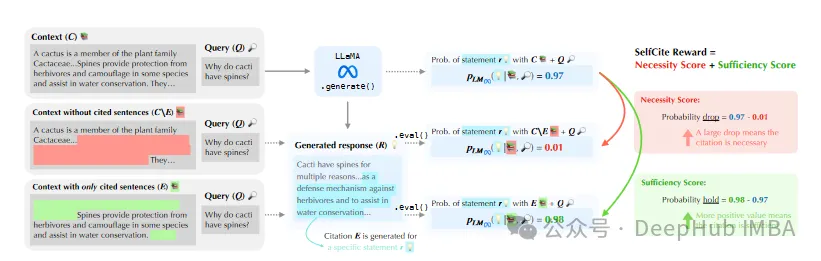 大型语言模型 (LLM) 在文本生成领域展现出卓越的能力,然而当需要 引用上下文内容 以支撑其生成内容时,现有方法仍面临挑战。 传统方法在引导 LLM 准确、可靠地对上下文内容进行引用时,容易产生 幻觉,即生成与上下文不符或缺乏上下文依据的引用,从而降低了生成回复的可信度和实用性。 为了解决这一关键问题,SelfCite 提出了一种新颖的自监督方法,旨在通过 自监督奖励机制,直接 提升 LLM 对上下文内容的引用质量,使其能够生成更准确、更可靠的句子级别引用,最终提升基于上下文的生成任务的整体性能。 SelfCite 的核心思想是利用 上下文消融 技术,通过模型自身评估引用质量,无需人工标注即可实现有效的引用优化。