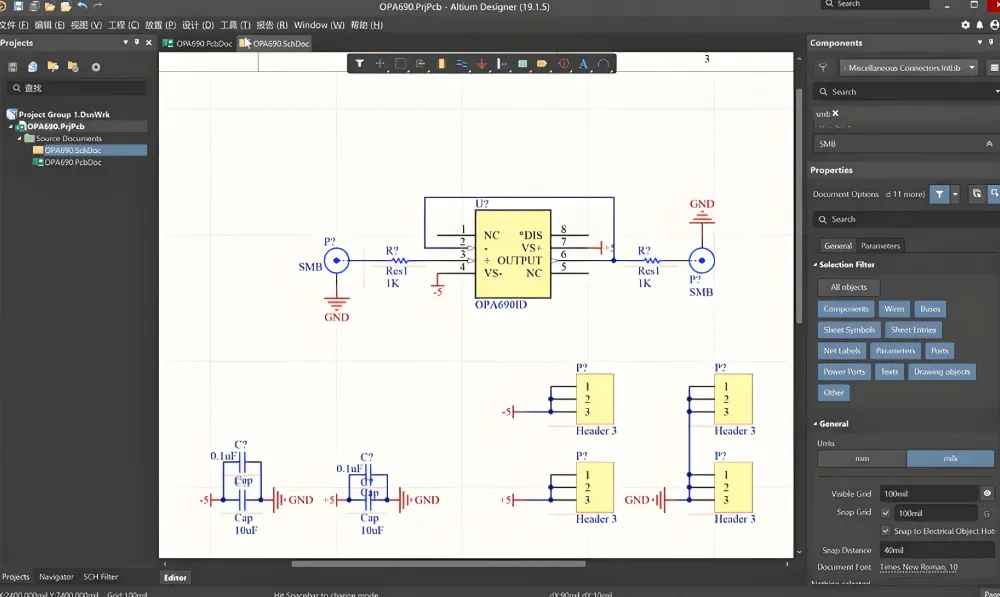 PCB设计本质上是基于先前绘制的原理图来创建PCB实体的过程。
