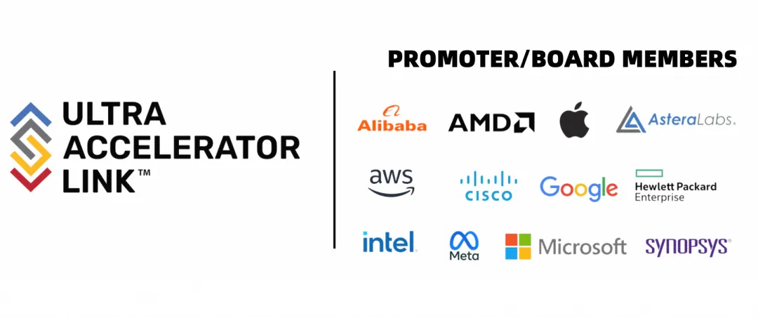 UALink联盟于2024年10月正式成立,是当前全球最重要的AI纵向互连(Scale Up)国际组织。UALink联盟创始董事会成员包括AMD、Astera Labs、AWS、Cisco、Google、HPE、Intel、Meta和Microsoft,阿里云、苹果、新思科技等3家企业最新入选,成员均来自云、半导体、处理器IP、软件公司、OEM等最顶尖厂商。