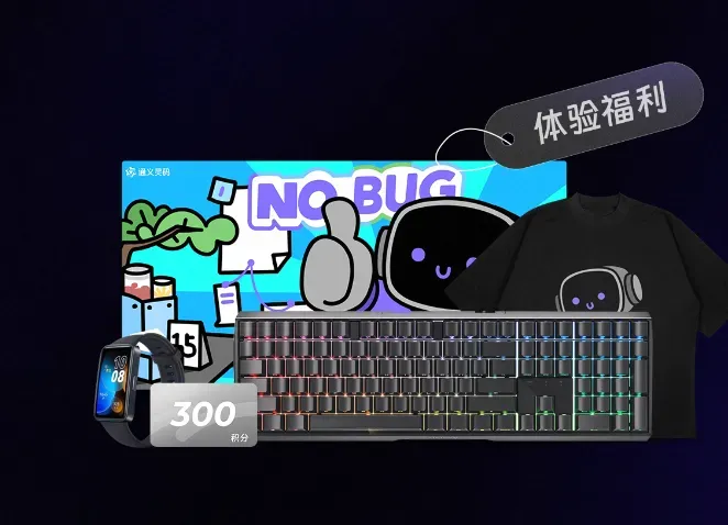 - 达人奖(20 名):通义灵码定制 T 恤、华为智能手环、通义灵码开发者大使称号