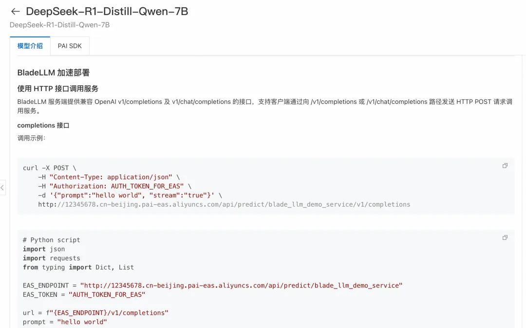 // 第三步:一键部署DeepSeek模型生成服务