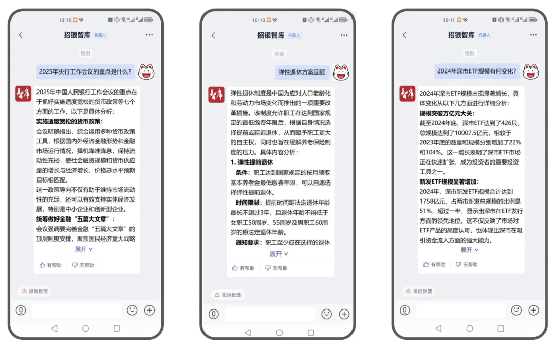 招商银行已在多个业务场景广泛应用阿里云通义千问大模型,包括智能投研助手“招银智库AI小研”、智能客服、通用办公、全行级知识库等。以智能投研助手“AI小研”为例,它依托招行最大的研究资源平台“招银智库”,利用阿里云通义千问大模型,搭建全站智能问答机器人、Chat研报和热点聚焦等功能,解决了传统投研过程中信息检索难、研报提炼复杂、分析耗时等问题,实现金融语义的精准理解和生成,大幅提升查询效率和投研精度,并自动化生成热点摘要与专业科普知识,显著提高了工作效率和决策质量,成为金融科技领域的重要创新。