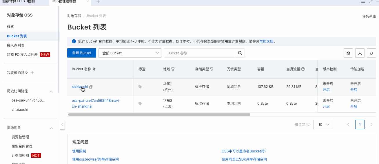 释放资源非常简单,参考官方提示,登录OSS管理控制台删除对象存储OSS Bucket、登录函数计算 FC 3.0控制台删除应用即可。